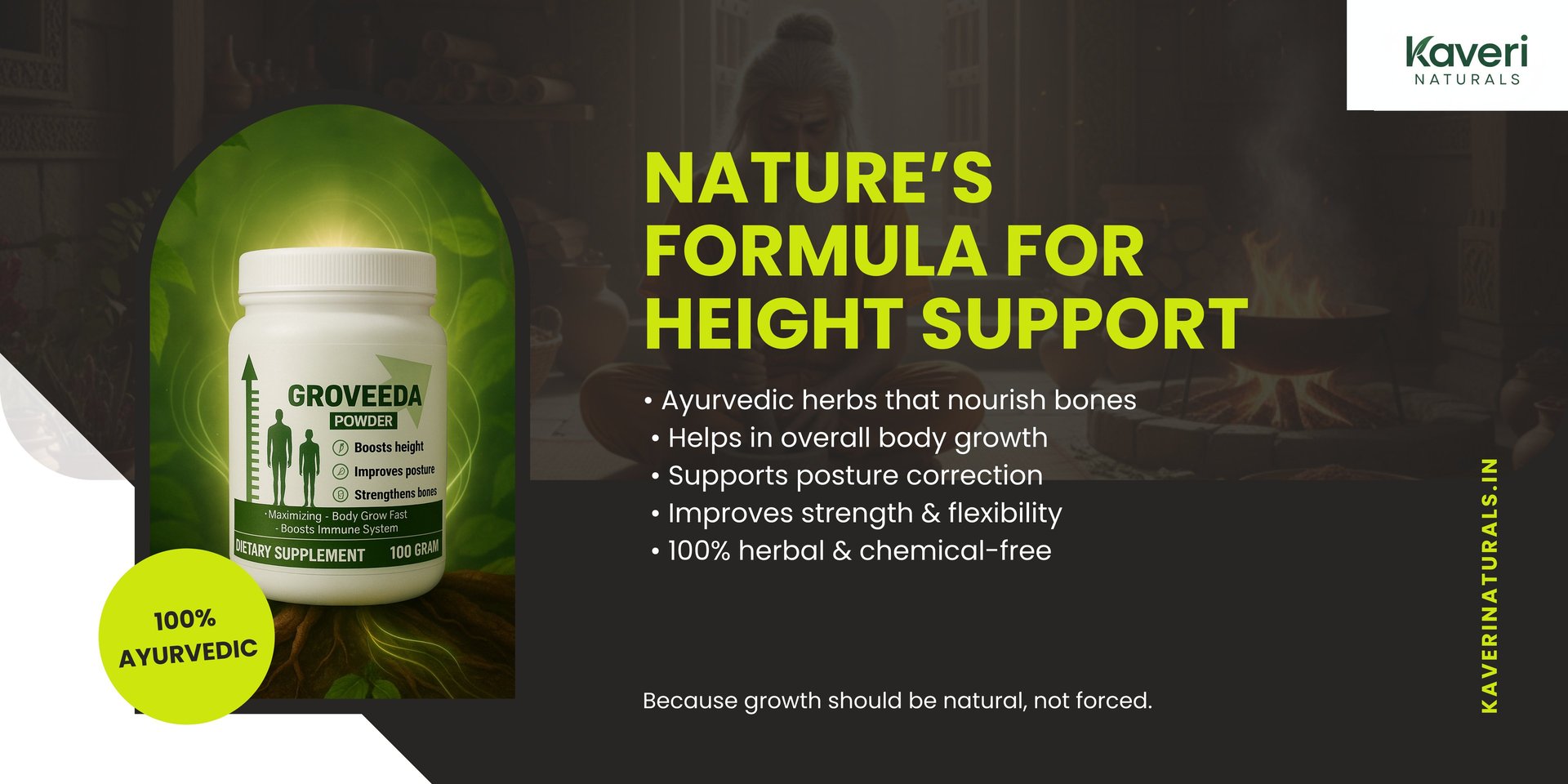 Groveeda helps improve posture, strengthen bones, and provide essential nutrition that may assist in healthy height development.